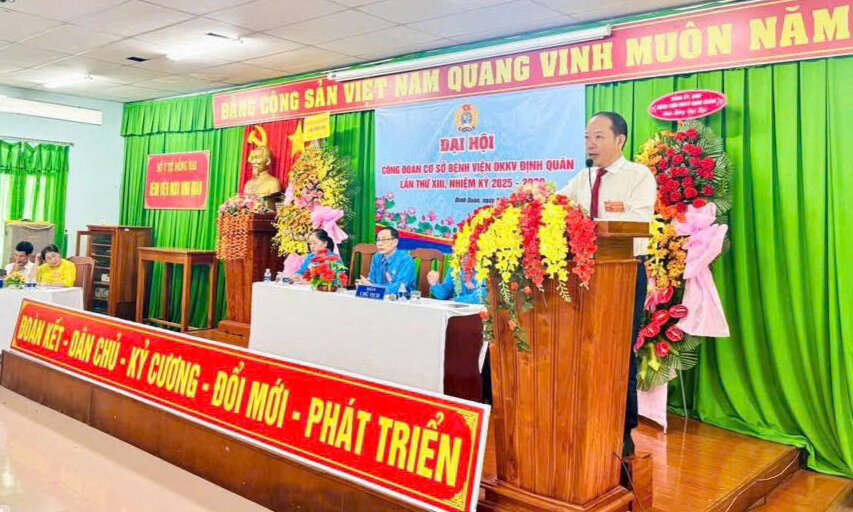 Thay mặt Đảng ủy và Ban Giám đốc, BS.CKII Tạ Quang Trí ghi nhận những đóng góp tích cực của tổ chức Công đoàn đối với hoạt động của bệnh viện. “Trong bối cảnh ngành y tế còn nhiều khó khăn, vai trò của Công đoàn càng quan trọng. Công đoàn Bệnh viện ĐKKV Định Quán luôn đồng hành cùng lãnh đạo bệnh viện, góp phần nâng cao chất lượng chăm sóc người bệnh và ổn định đời sống, tâm lý nhân viên y tế. Ban Giám đốc tin tưởng nhiệm kỳ mới, Công đoàn sẽ tiếp tục phát huy tinh thần trách nhiệm, sáng tạo và đoàn kết để hỗ trợ người lao động tốt hơn nữa”, BS Trí nhấn mạnh.