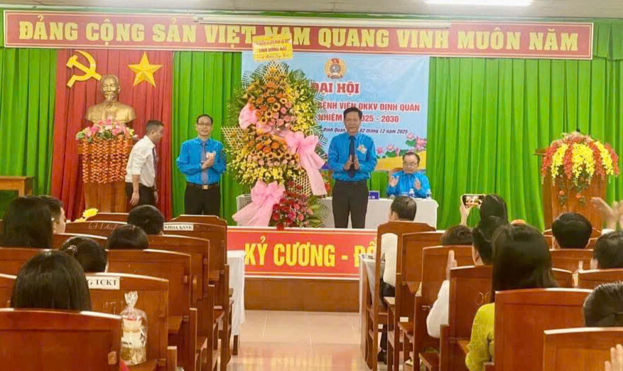 Chiều 2-12, Công đoàn cơ sở Bệnh viện ĐKKV Định Quán tổ chức Đại hội lần thứ XIII, nhiệm kỳ 2025–2030. Tham dự Đại hội có đồng chí Trịnh Đức Thắng – Ủy viên BCH, Phó Ban Công tác Công đoàn, Liên đoàn Lao động tỉnh Đồng Nai; BS.CKII Tạ Quang Trí – Bí thư Đảng ủy, Giám đốc Bệnh viện; đại diện Đảng ủy, Ban Giám đốc, các tổ Công đoàn và 86 đoàn viên tiêu biểu đại diện hơn 360 đoàn viên công đoàn.
