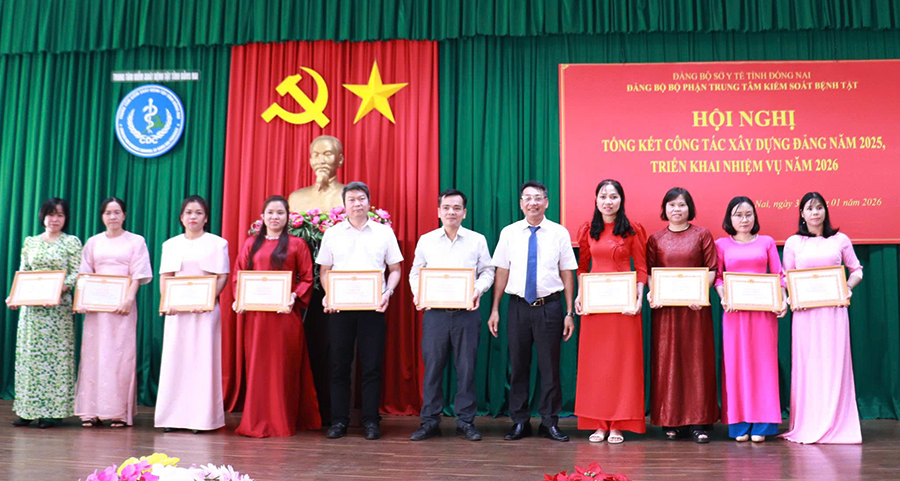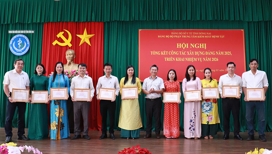 Dịp này, tập thể Chi bộ 1 và 32 đảng viên thuộc Đảng bộ bộ phận CDC Đồng Nai hoàn thành xuất sắc nhiệm vụ năm 2025 được Đảng uỷ Sở Y Đồng Nai tặng giấy khen.