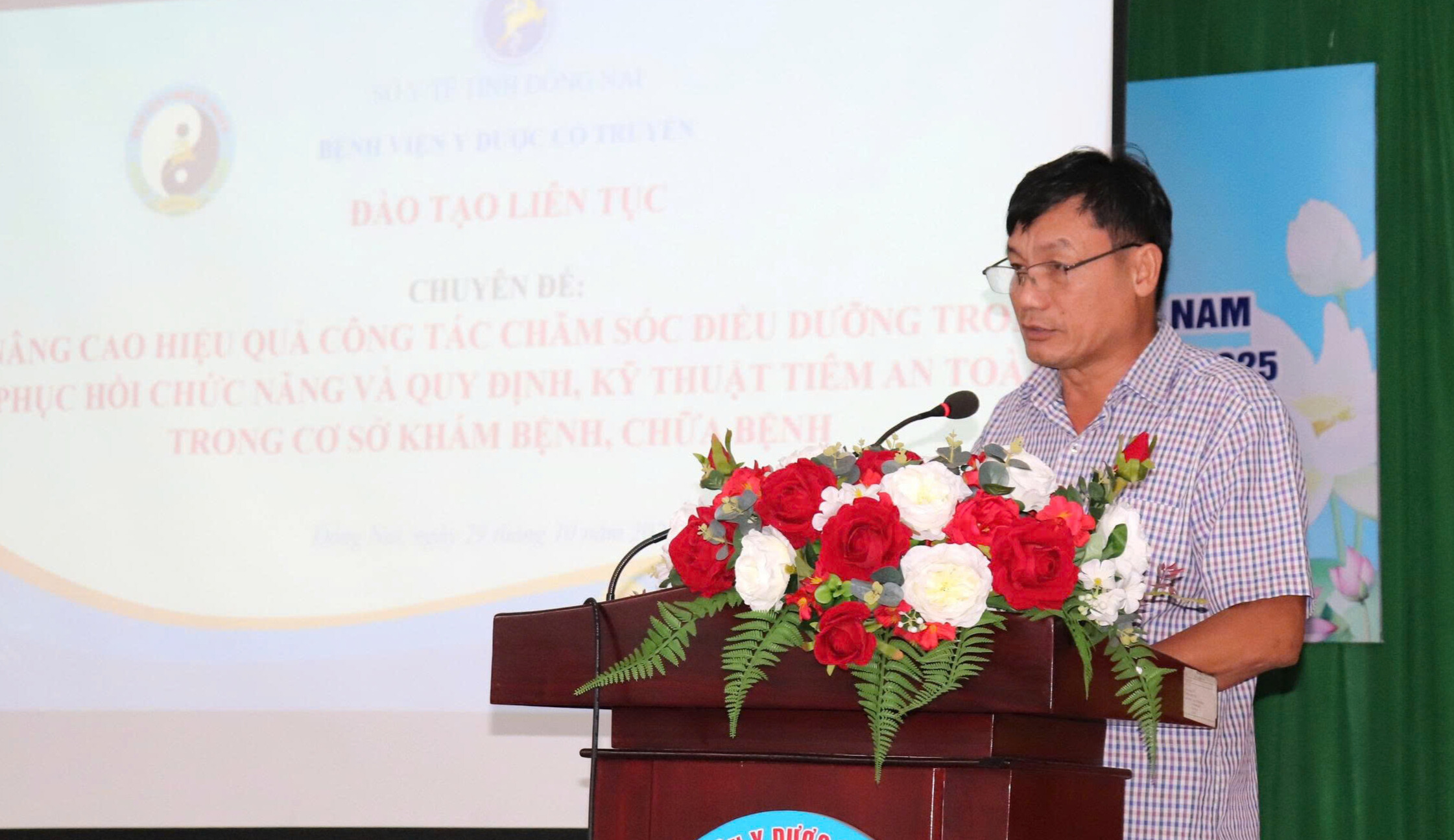 Chiều 29-10, Bệnh viện Y dược cổ truyền Đồng Nai đã tổ chức chương trình đào tạo liên tục cập nhật kiến thức chuyên môn cho nhân viên y tế năm 2025 với chuyên đề “Nâng cao hiệu quả công tác chăm sóc điều dưỡng trong phục hồi chức năng và quy định kỹ thuật tiêm an toàn trong cơ sở khám chữa bệnh”. Gần 100 học viên là bác sĩ, điều dưỡng, dược sĩ, kỹ thuật viên, y sĩ, hộ lý của bệnh viện đã tham gia chương trình.
