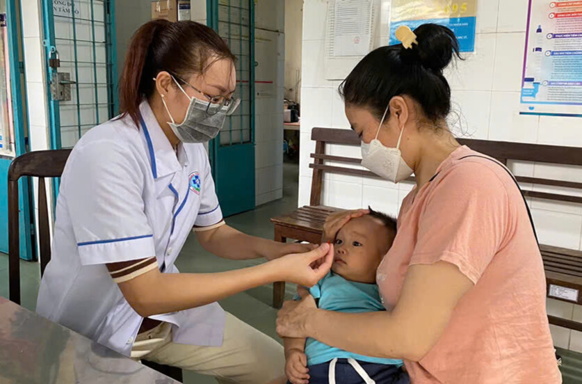 Trẻ uống vitamin A tại một điểm trạm của Trạm Y tế phường Tam Hiệp
