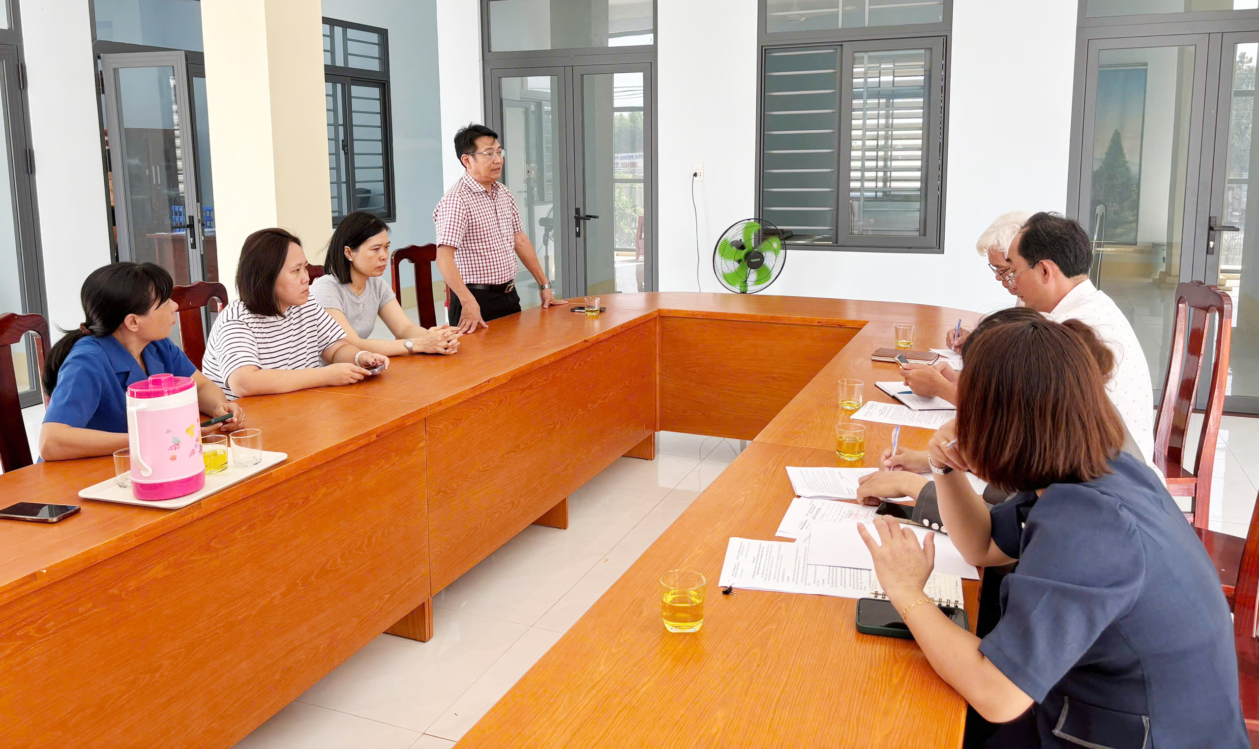 BS.CKII La Văn Dầu, Giám đốc CDC Đồng Nai phát biểu tại buổi làm việc với Trạm Y tế phường Chơn Thành về công tác phòng, chống dịch.
