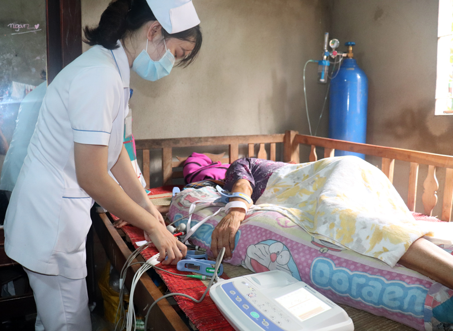 Ông B.V.B. chia sẻ, nhờ có dịch vụ khám, chữa bệnh tại nhà mà gia đình ông đỡ vất vả hơn rất nhiều. Bởi trước kia, mỗi lần đưa bà T. đến bệnh viện, gia đình ông B. phải thuê xe ô tô, phải có ít nhất 2 người đi cùng để dìu bệnh nhân, lo liệu thủ tục giấy tờ ở bệnh viện, chỉ còn một người lớn ở nhà để lo việc nhà, việc rẫy và con/cháu nhỏ. Bác sĩ, điều dưỡng khi đến khám bệnh tại nhà rất tận tình, chu đáo, giải thích cặn kẽ, tỉ mỉ giúp gia đình hiểu hơn về bệnh tình của người nhà.