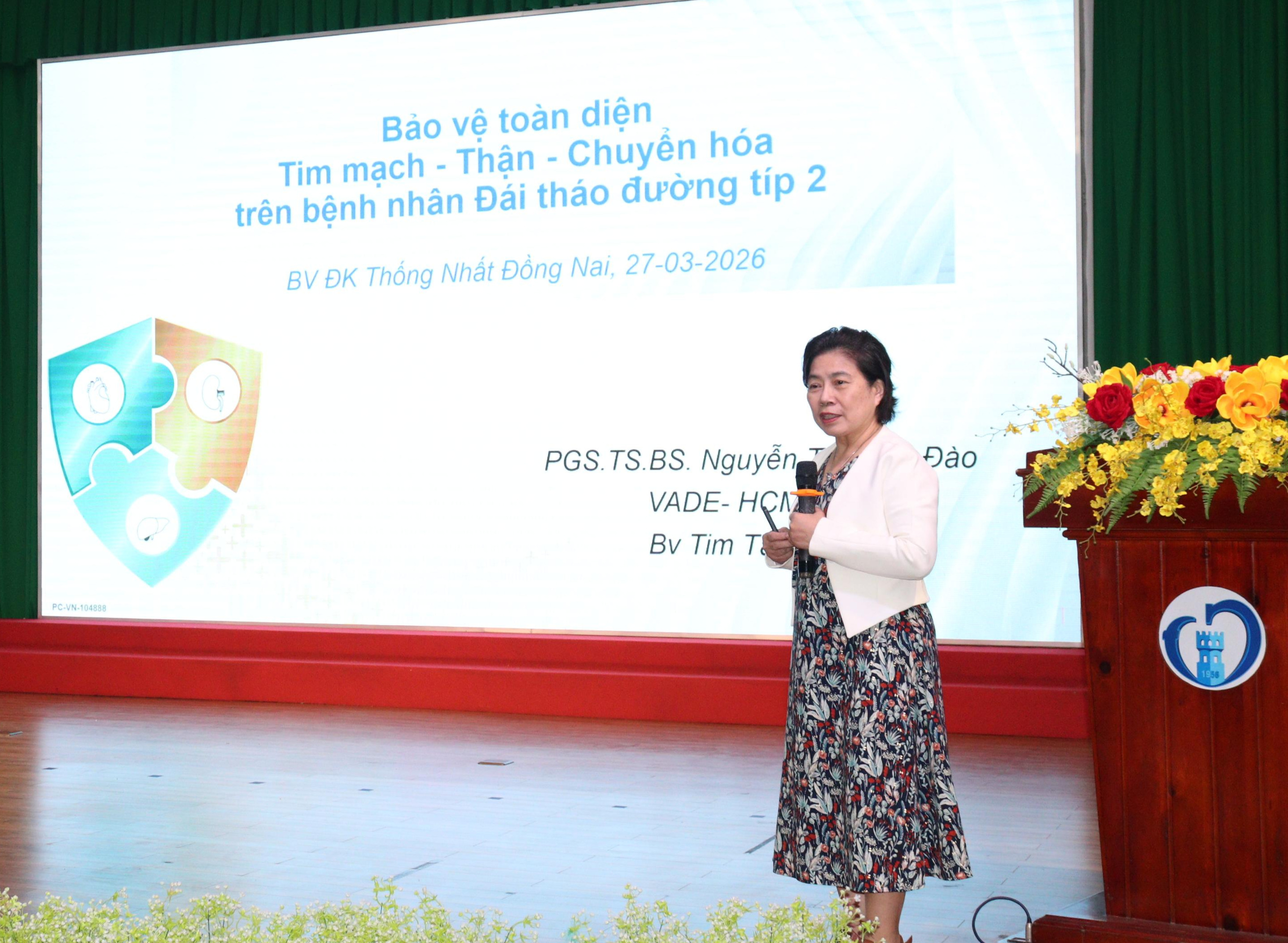 Ngày 27-3vừa qua, Bệnh viện ĐK Thống Nhất (Đồng Nai) tổ chức hội thảo chuyên đề "Bảo vệ toàn diện tim mạch – thận – chuyển hóa: hiện tại và tương lai", với sự tham dự của TTƯT.BS.CKII Đỗ Thị Nguyên - Giám đốc Sở Y tế Đồng Nai ; PGS.TS.BS Nguyễn Thị Bích Đào, Chủ tịch Hội Đái tháo đường - Nội tiết TP.HCM; BS.CKII Trần Quang Khánh, Khoa Tim mạch can thiệp, Bệnh viện Chợ Rẫy cùng đông đảo y, bác sĩ, nhân viên y tế của bệnh viện.
