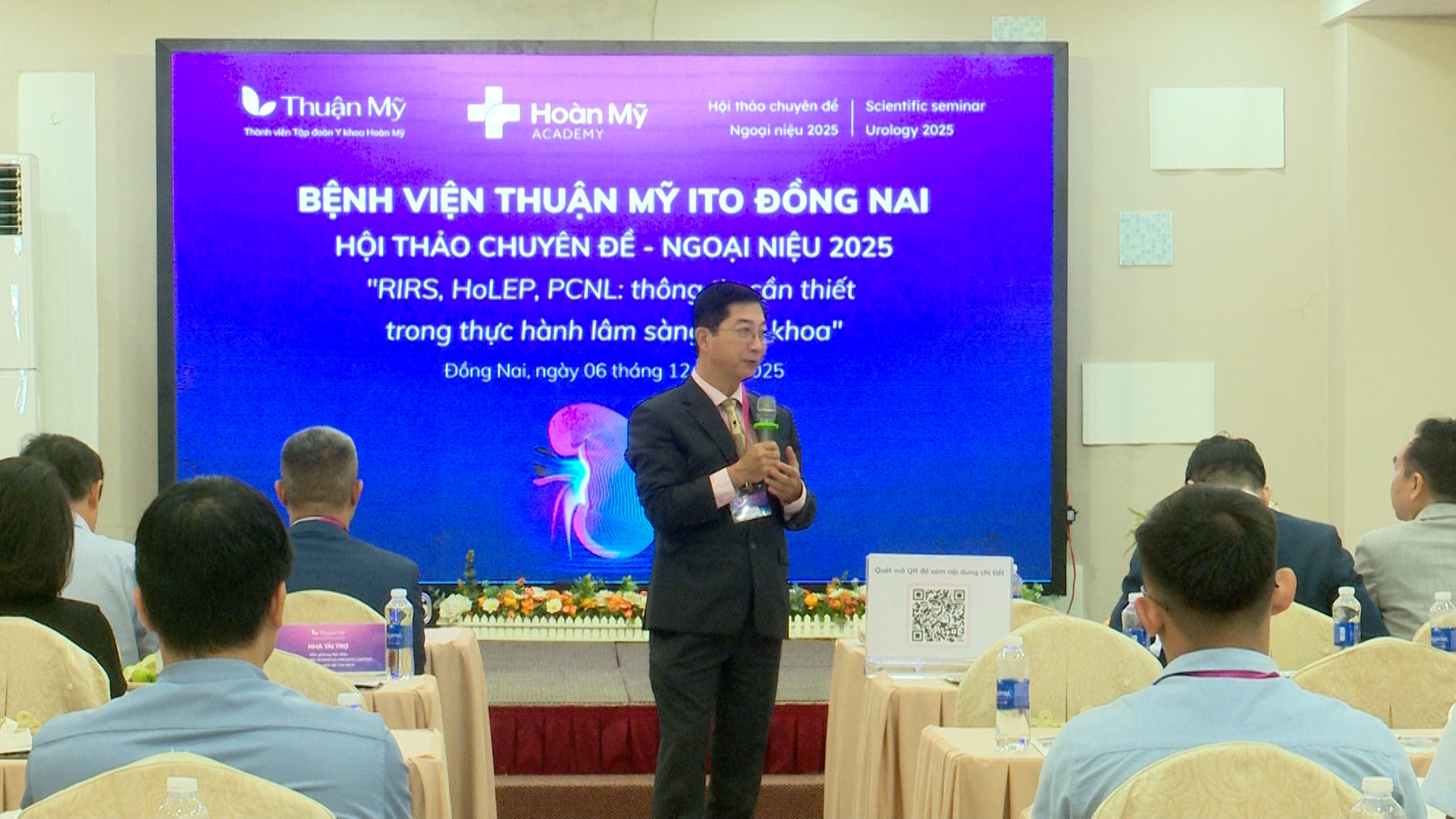 Sáng ngày 6 tháng 12, Bệnh viện Thuận Mỹ ITO Đồng Nai (thành viên Tập đoàn Y khoa Hoàn Mỹ) đã tổ chức thành công Hội thảo khoa học chuyên đề Ngoại niệu năm 2025 với chủ đề: “RIRS, HoLEP, PCNL — thông tin cần thiết trong thực hành lâm sàng niệu khoa”. Hội thảo đã thu hút hơn 60 bác sĩ, chuyên gia và nhân viên y tế đến từ các bệnh viện, cơ sở y tế trong và ngoài tỉnh.