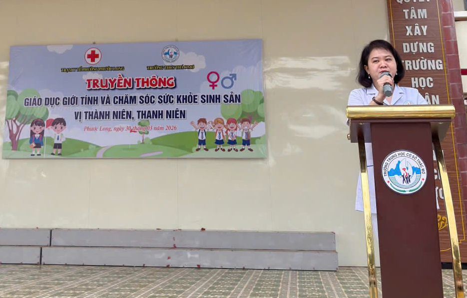 Sáng 30-3, Trạm Y tế phường Phước Long phối hợp Hội Liên hiệp Phụ nữ phường và Trường THCS Thác Mơ tổ chức buổi truyền thông chuyên đề về giáo dục giới tính và chăm sóc sức khỏe sinh sản vị thành niên, thanh niên cho hơn 1.000 em học sinh toàn trường.