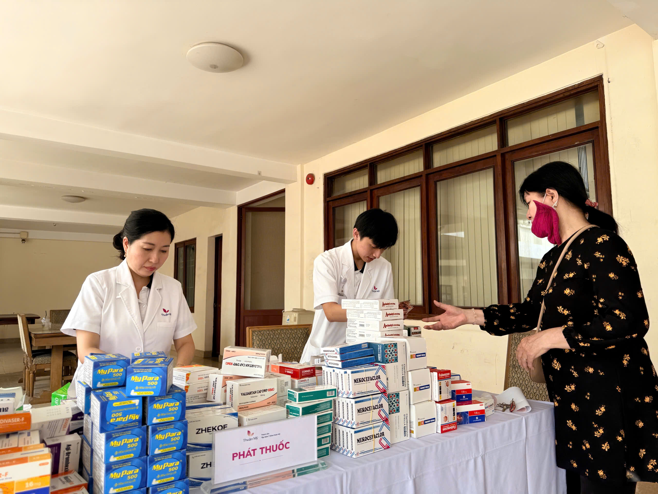 Sau khi thăm khám, người dân được cấp phát thuốc miễn phí theo chỉ định của bác sĩ .