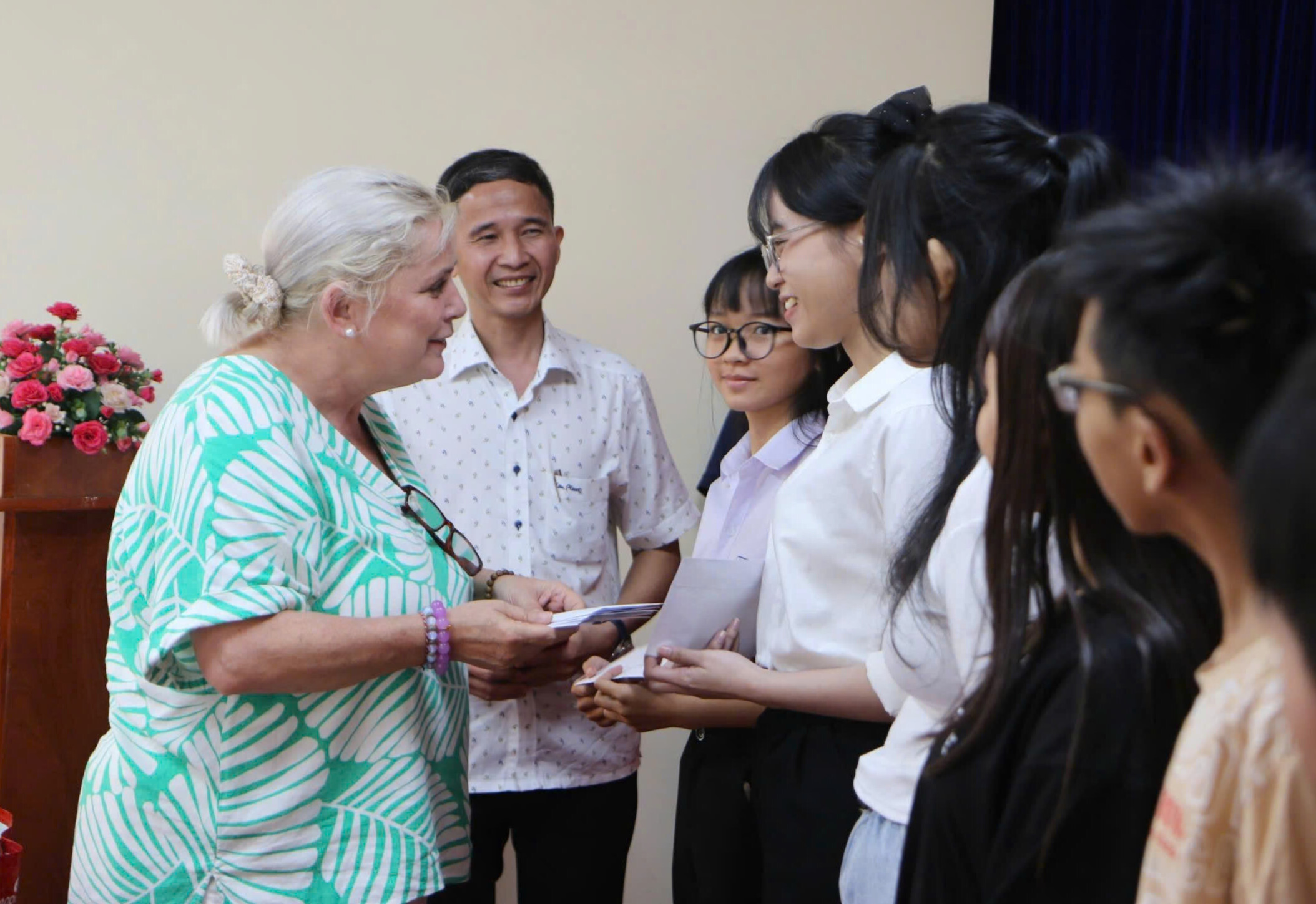 Bà Helen Christina Pitolas- Trưởng Đại diện CNCF tại Việt Nam trao tặng học bổng cho các em học sinh