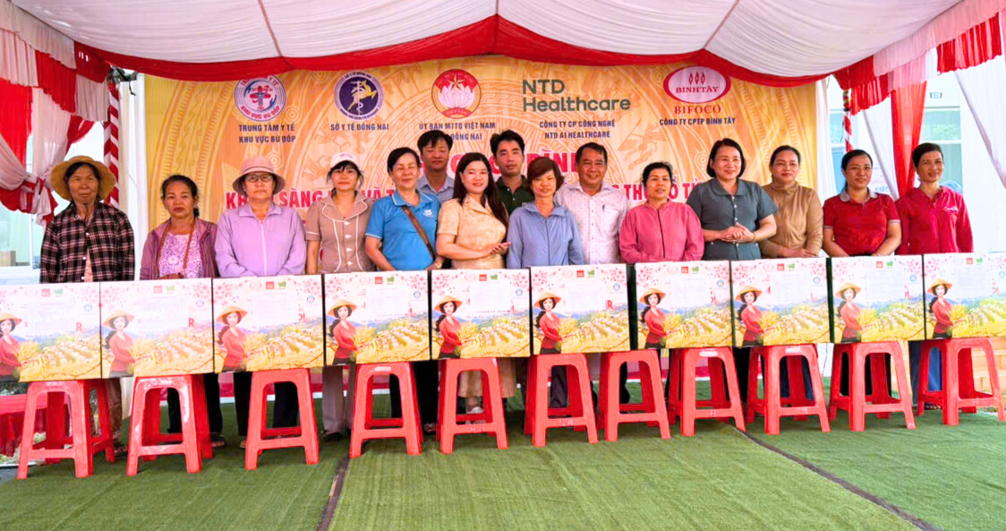 Nhân kỷ niệm 95 năm Ngày thành lập Hội liên hiệp Phụ nữ Việt Nam (20/10/1930- 20/10/2025) và Ngày Phụ nữ Việt Nam (20-10). Ngày 18-10 vừa qua, tại Trung tâm Y tế khu vực Bù Đốp, Ban Thường trực Ủy ban MTTQ Việt Nam tỉnh Đồng Nai, Sở Y tế đã phối hợp với Công ty cổ phần Công nghệ NTD AI Healthcare và Công ty cổ phần Thực phẩm Bình Tây (TP. Hồ Chí Minh) tổ chức chương trình khám, sàng lọc ung thư cổ tử cung bằng công nghệ AI và tặng quà miễn phí cho phụ nữ vùng biên.