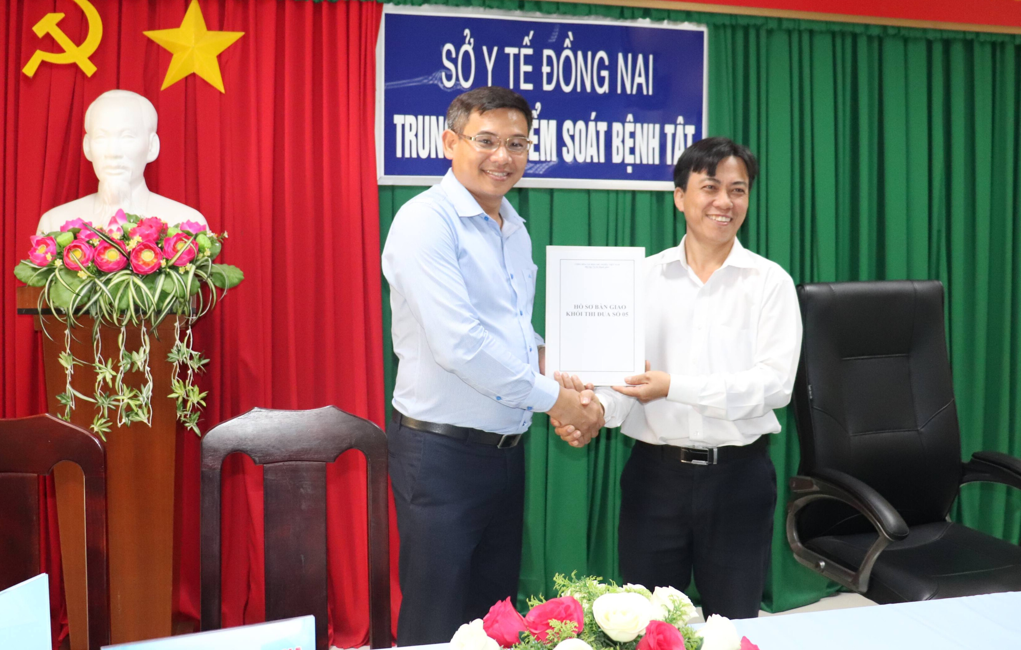 Lãnh đạo CDC Đồng Nai, Khối trưởng cụm thi đua số 5 năm 2025 bàn giao Khối trưởng năm 2026 cho lãnh đạo Trung tâm công tác xã hội và Quỹ bão trợ trẻ em.