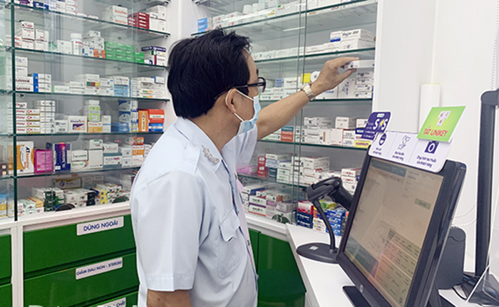 Thanh tra Sở Y tế kiểm tra tại một nhà thuốc trên địa bàn tỉnh.