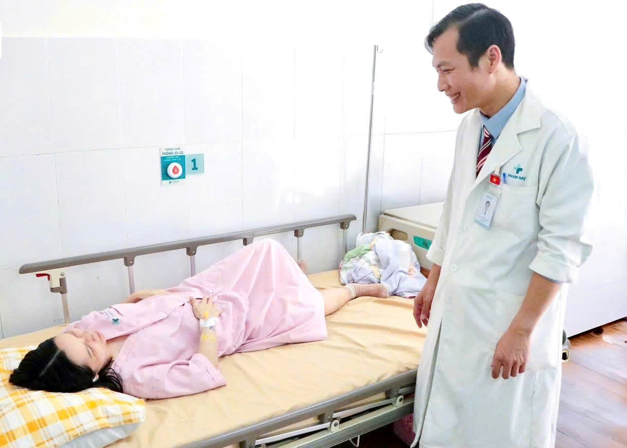 Bác sĩ Chu Văn Nghĩa, Khoa Sản, Bệnh viện Hoàn Mỹ Bình Phước thăm hỏi sức khỏe sản phụ L.T.N.