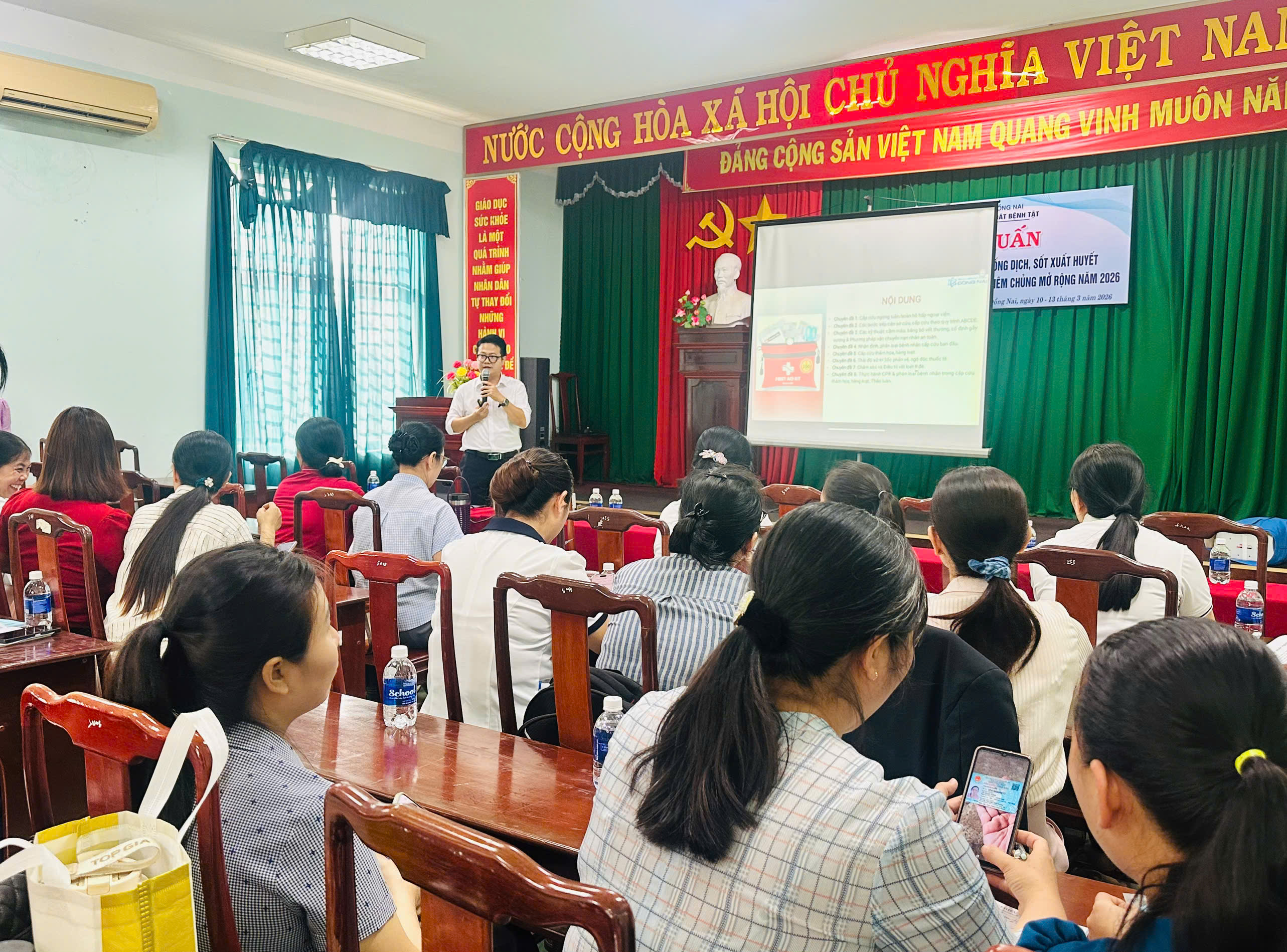 Ngày 16-4, tại hội trường cơ sở 2 Trung tâm Kiểm soát bệnh tật tỉnh (CDC Đồng Nai), CDC Đồng Nai tổ chức lớp tập huấn “Nhận định, phân loại và xử trí bệnh nhân cấp cứu – cấp cứu thảm họa, tai nạn hàng loạt” cho 40 viên chức, nhân viên y tế đang công tác tại các trạm y tế xã, phường khu vực Tây Bắc Đồng Nai.