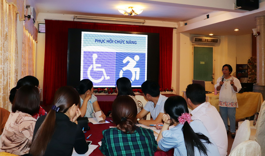 Phát buổi tại buổi tập huấn, BS.CKII Lê Quang Trung, Phó giám đốc Sở Y tế cho biết, không có ai gần người khuyết bằng cán bộ chuyên trách PHCN và cộng tác viên. Họ là những người không chỉ chịu trách nhiệm về việc tổ chức khám sàng lọc, thu thập thông tin, theo dõi và giám sát tiến trình trợ giúp, còn hiểu rõ người khuyết tật cần gì, mong muốn gì đề hòa nhập vào cộng đồng.
