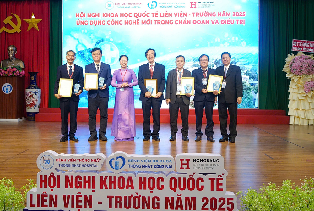 TTƯT BS CKII Đỗ Thị Nguyên – Giám đốc Sở Y tế Đồng Nai trao Kỷ niệm chương cho các báo cáo viên tại Hội nghị khoa học quốc tế liên Viện – Trường năm 2025.