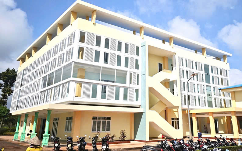 Tòa nhà khám bệnh mới của TTYTKV vực Cẩm Mỹ được thiết kế khang trang, hiện đại.