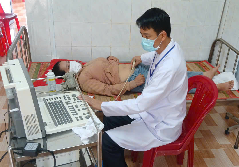 BS.CKI Trần Văn Thi, Trưởng Trạm Y tế xã Lộc Quang siêu âm cho một bệnh nhân.