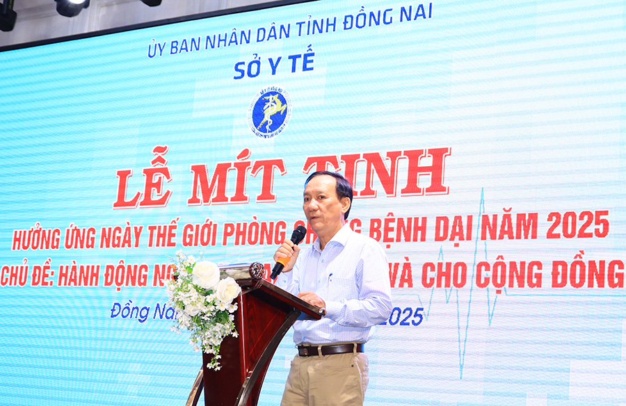 Tham luận tại lễ mít-tinh, ông Nguyễn Quang Tuyên – Phó Chi cục trưởng Chi cục Chăn nuôi và Thủy sản Đồng Nai cho biết, theo thống kê sơ bộ trên địa bàn tỉnh hiện có khoảng 420.000 con chó, mèo (chiếm khoảng 6% tổng đàn cả nước). Tình hình dịch bệnh trên chó mèo gia tăng liên tục, chỉ trong 9 tháng đầu năm 2025, đã ghi nhận 59 ca Dại ở chó, tăng 47,5% so với cùng kỳ năm trước.
