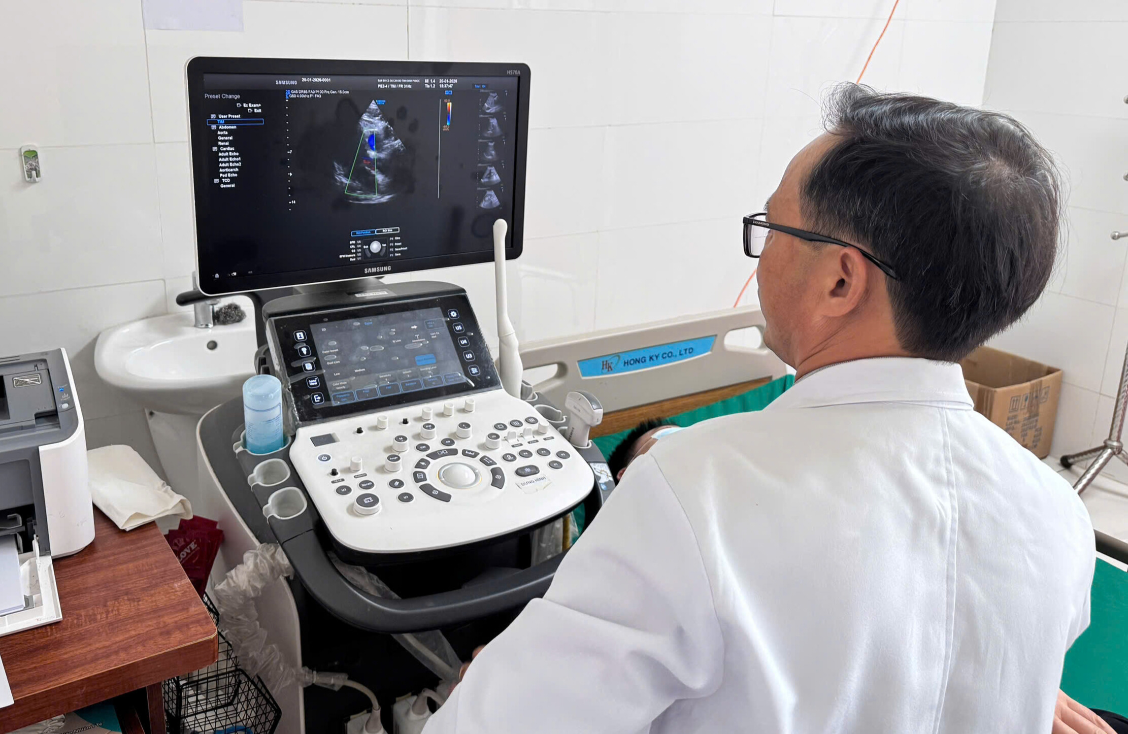 BS.CKI Nguyễn Văn Cường, Trưởng Khoa Chẩn đoán hình ảnh, Bệnh viện Đa khoa Bình Phước đang siêu âm cho bệnh nhân bị tim mạch
