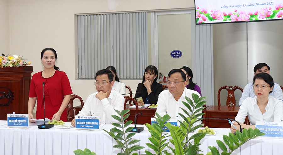 Phát biểu tại buổi làm việc, Giám đốc Sở Y tế Đồng Nai Đỗ Thị Nguyên, cho biết công tác chăm sóc sức khỏe ở Đồng Nai có 3 cấp: cấp chuyên sâu, cơ bản và cấp ban đầu. Đồng Nai đã làm chủ và triển khai thành công các kỹ thuật cao, chuyên sâu vốn trước đây chỉ thực hiện được tại tuyến trung ương, như: phẫu thuật tim hở, tim nội soi, thay khớp nội soi, lấy sỏi thận qua da, phẫu thuật nội soi trong chỉnh hình và ngoại tông quát... Đặc biệt, lĩnh vực tim mạch có bước phát triền vượt bậc với 5 trung tâm tim mạch hoạt động hiệu quả, cứu sống hàng chục nghìn ca bệnh nặng. Trong điều trị đột quỵ, Bệnh viện ĐK Đồng Nai được Hội Đột quỵ Thế giới trao chứng nhận Kim cương, Bênh viện ĐK Thống Nhất và Bệnh viện ĐKKV Long Khánh đạt chuẩn Bạch kim. Những kết quả này giúp người dân trong tỉnh tiếp cận dịch vụ y tế chất lượng cao ngay tại đia phương, giảm đáng kế chi phí, thời gian và công sức đi lại.