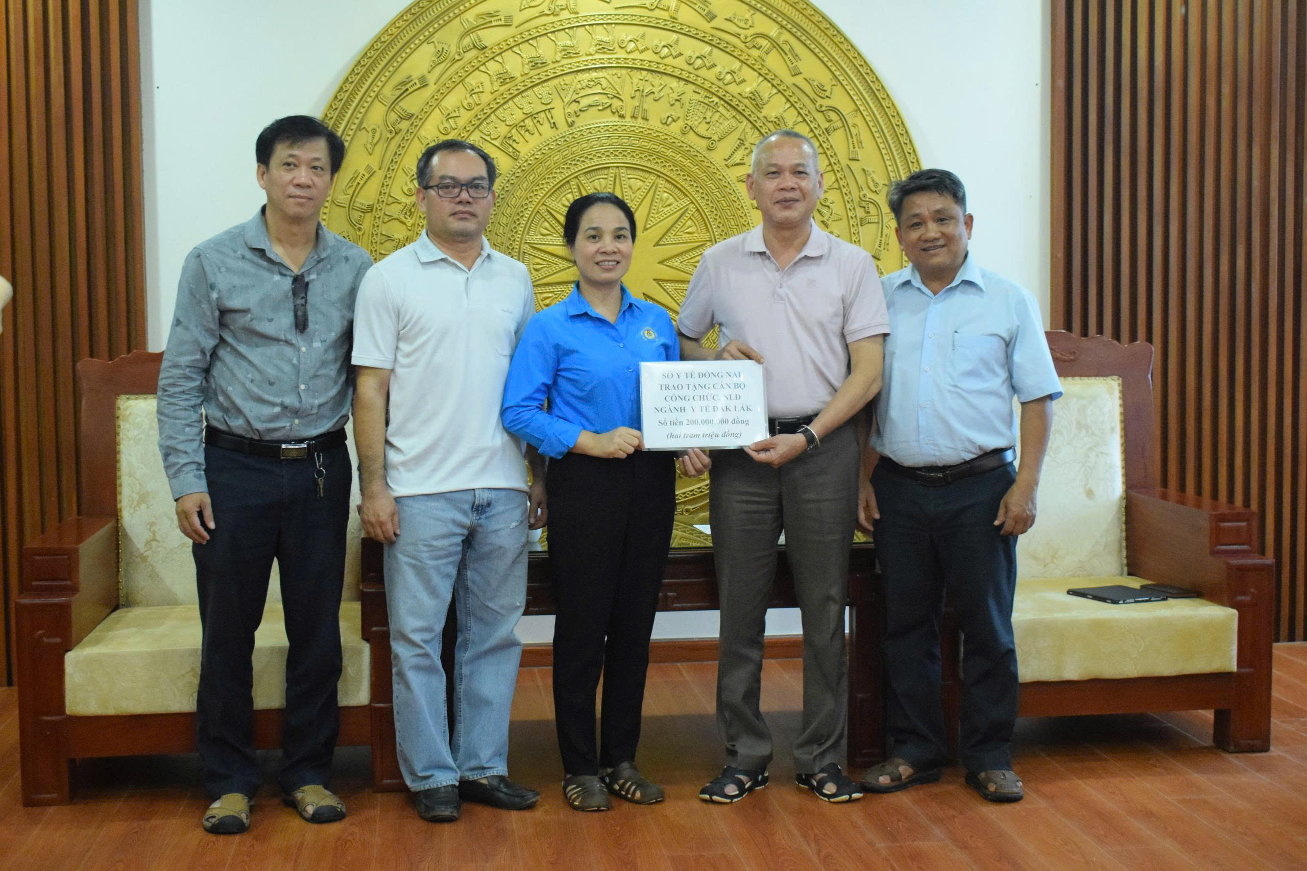 TTƯT.BS.CKII Đỗ Thị Nguyên – Giám đốc Sở Y tế tỉnh Đồng Nai trao tặng 200 triệu đồng cho cán bộ, nhân viên tại các trạm y tế xã bị ảnh hưởng do thiên tai.