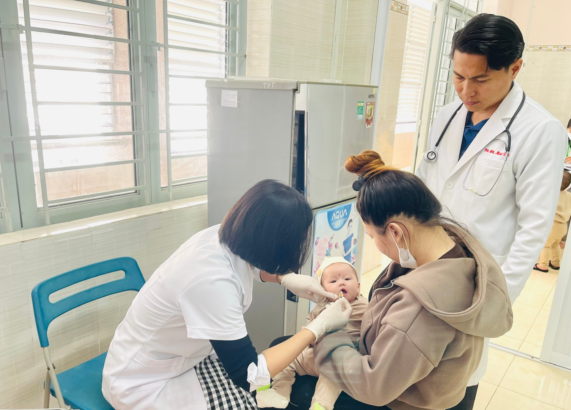 Cho trẻ uống vắc xin bại liệt tại Trạm Y tế phường Đồng Xoài, tỉnh Đồng Nai.