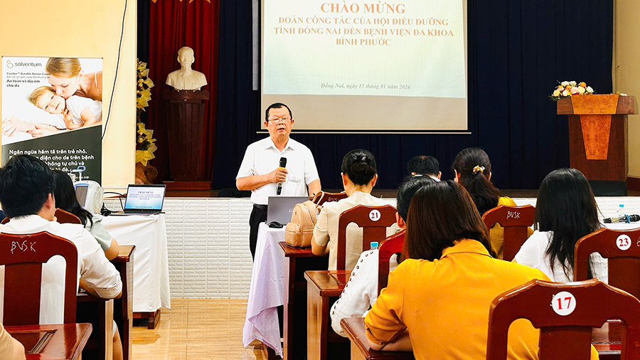 Trong 2 ngày 15 và 16/1, tại Bệnh viện ĐK Bình Phước, Hội Điều dưỡng tỉnh Đồng Nai tổ chức lớp tập huấn chuyên đề “Nền tảng toàn diện trong chăm sóc và quản lý vết thương”, nhằm nâng cao năng lực chuyên môn cho đội ngũ điều dưỡng, hộ sinh, kỹ thuật y, đồng thời thúc đẩy hoạt động hội nghề nghiệp trong lĩnh vực chăm sóc sức khỏe.