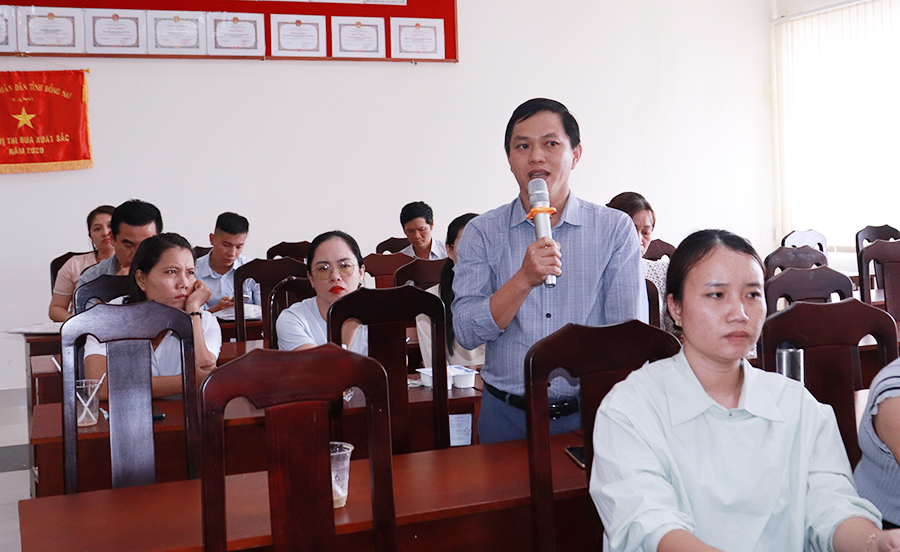 Học viên trao đổi, chia sẻ những khó khăn tại đơn vị tại lớp tập huấn.