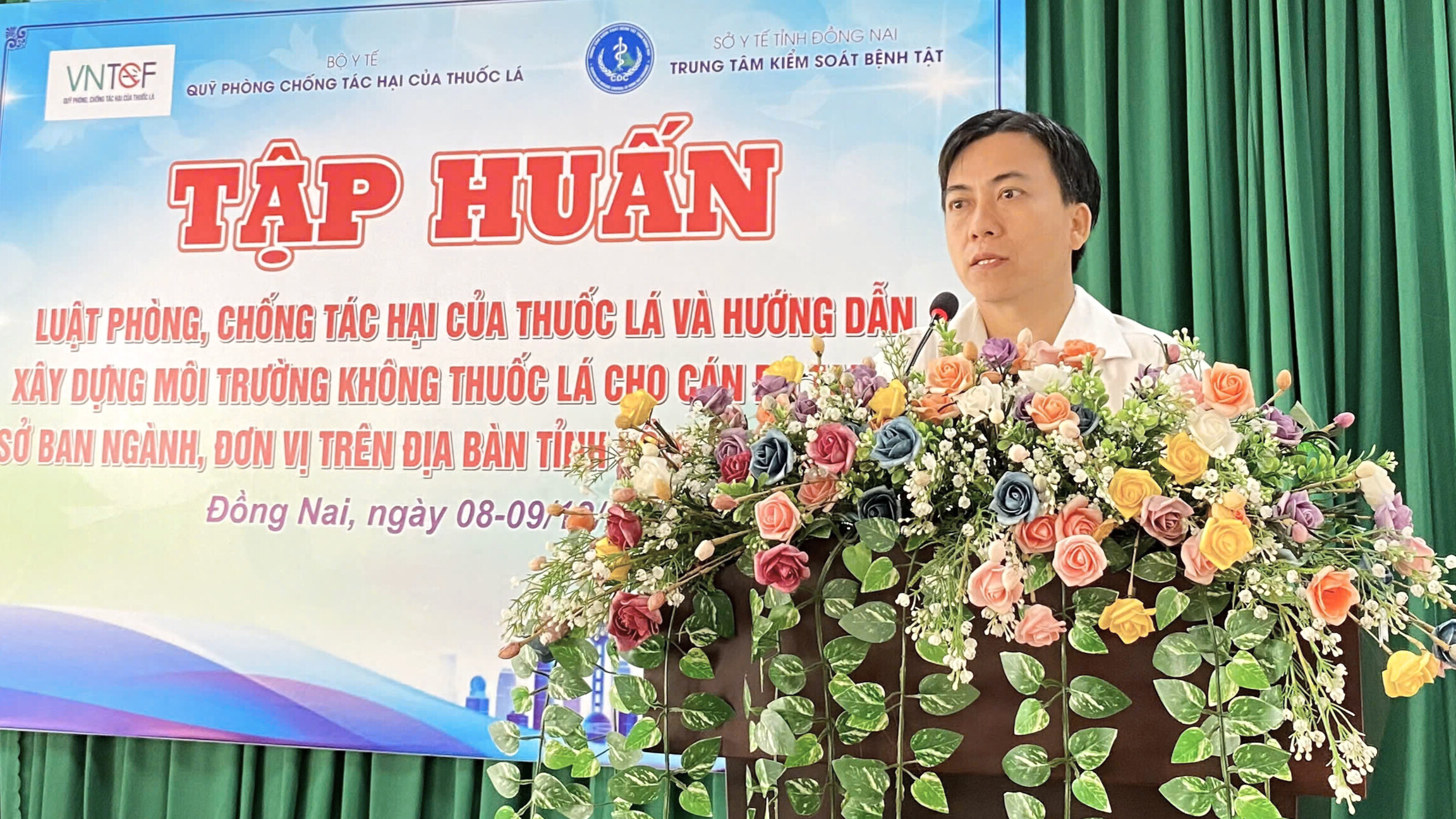 Phát biểu khai mạc tại lớp tập huấn, ThS. Trần Ngọc Quang cho biết, hiện nay tỷ lệ hút thuốc lá vẫn còn cao (Theo kết quả Điều tra năm 2024 trên địa bàn tỉnh Đồng Nai cho thấy: tỷ lệ hút thuốc lá chung là 20,6%), nhiều người dân còn chưa có ý thức về phòng, chống tác hại của thuốc lá. Do đó, cần sự phối hợp chặt chẽ hơn nữa giữa các cấp chính quyền, các cơ quan ban ngành, đoàn thể nhằm nâng cao nhận thức của người dân về tác hại của thuốc lá, giảm dần tỷ lệ hút thuốc lá trong cộng đồng, tiến tới kiểm soát hiệu quả tác hại thuốc lá theo quy định của Luật phòng, chống tác hại của thuốc lá.