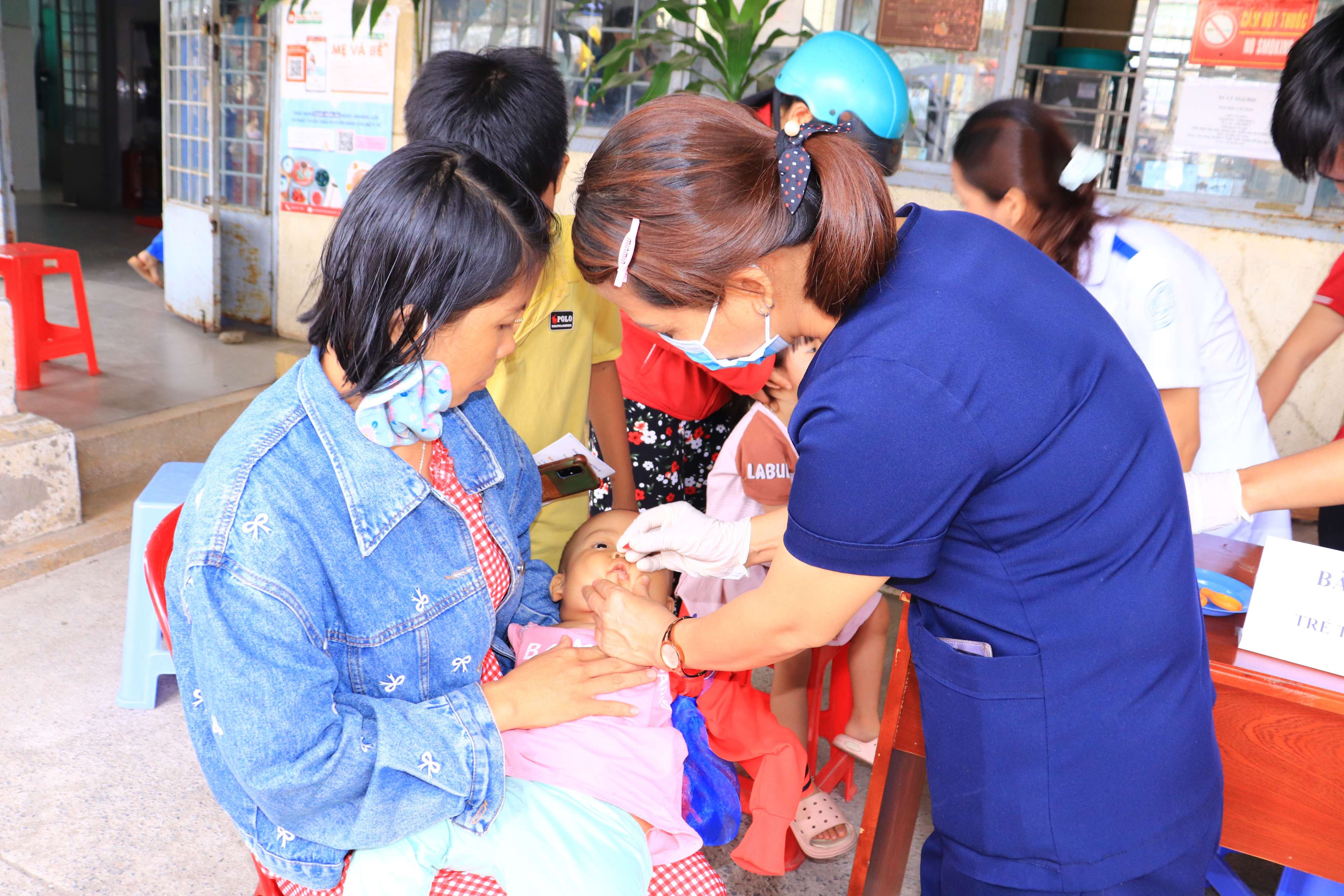 Trạm y tế phường Trảng Dài cho trẻ uống Vitamin A đợt 2/2025