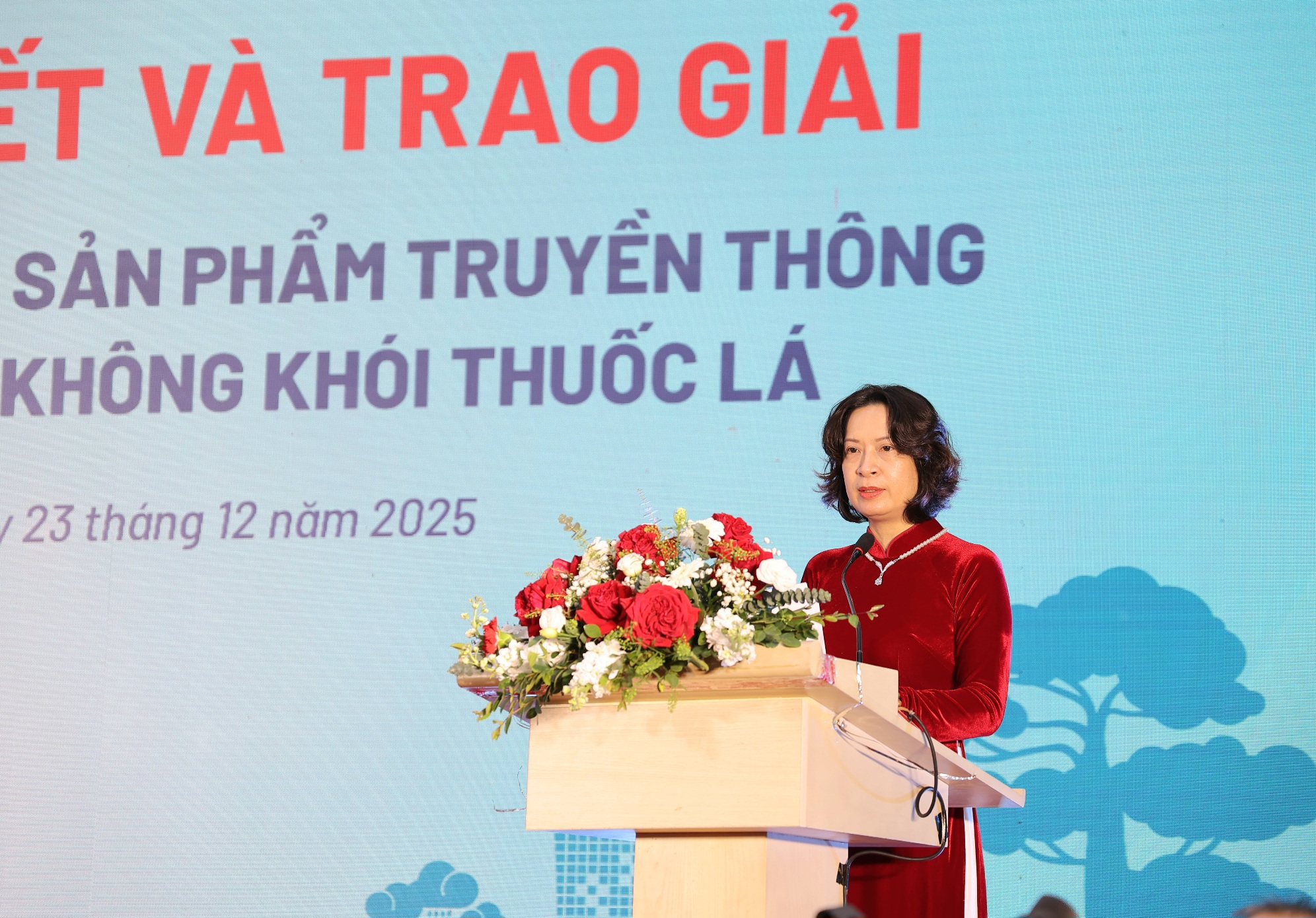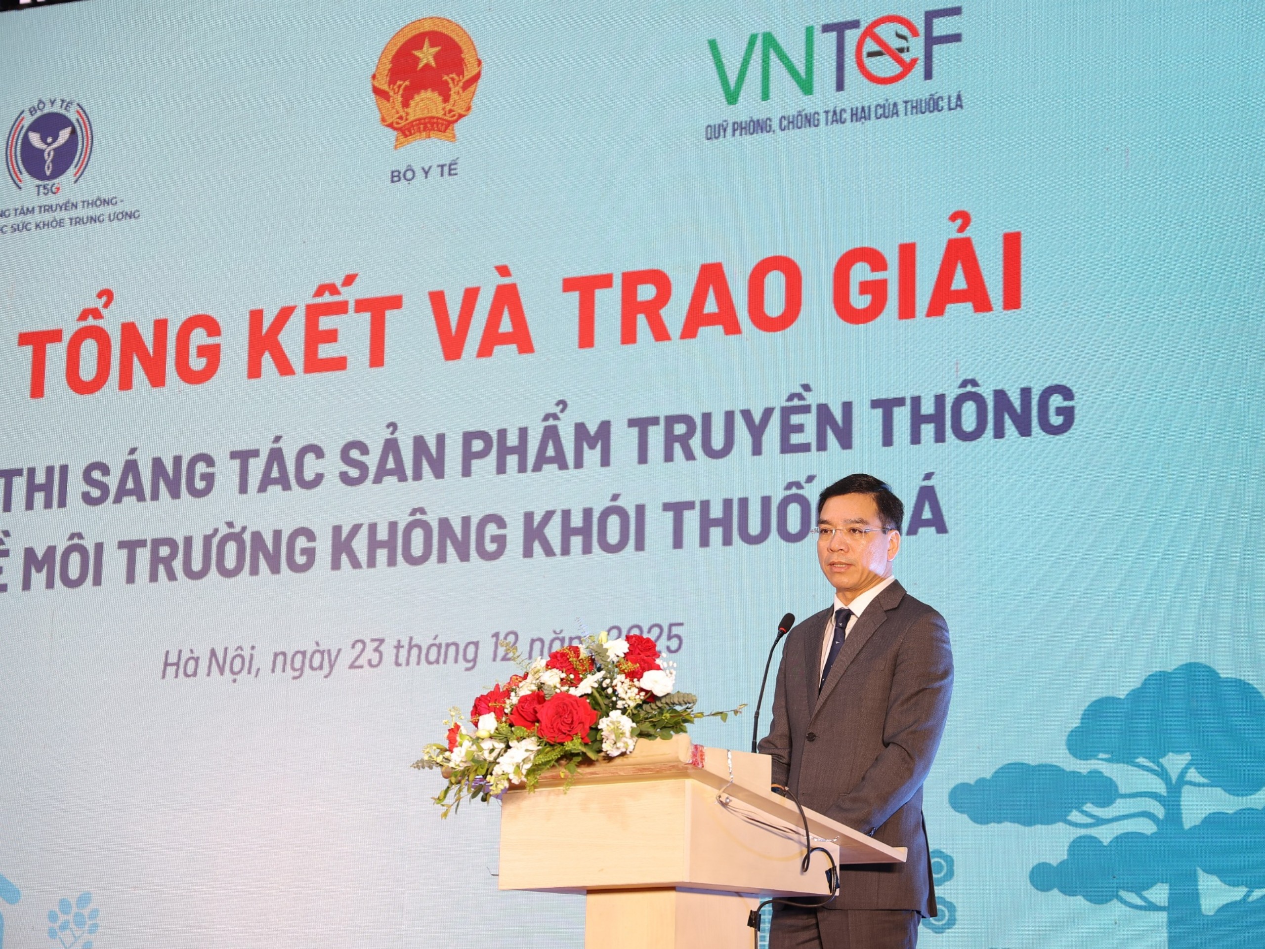 Phát biểu tại buổi lễ, PGS.TS. Nguyễn Thị Liên Hương, Thứ trưởng Bộ Y tế, đánh giá cao sáng kiến phối hợp tổ chức cuộc thi của Trung tâm Truyền thông – Giáo dục sức khỏe Trung ương và Quỹ Phòng, chống tác hại của thuốc lá. Thứ trưởng nhấn mạnh, cuộc thi không chỉ là sân chơi sáng tạo mà còn là hoạt động chuyên môn sâu rộng trong hệ thống truyền thông y tế, đặc biệt ở tuyến cơ sở. Các sản phẩm đạt giải cần tiếp tục được khai thác, sử dụng hiệu quả trên các phương tiện truyền thông đại chúng và nền tảng số, góp phần xây dựng môi trường sống trong lành, không khói thuốc.