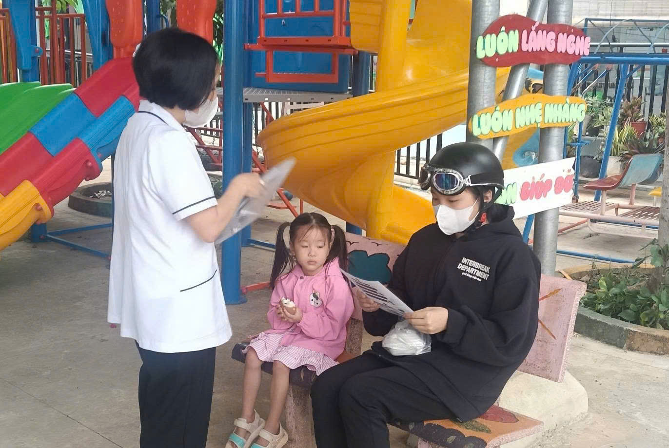 Tại chương trình, nhân viên y tế cung cấp thông tin dễ hiểu về nguyên nhân, đường lây và dấu hiệu nhận biết của các bệnh như tay chân miệng, ho gà, sốt xuất huyết. Phụ huynh được hướng dẫn phát hiện sớm các biểu hiện như sốt, loét miệng, nổi bóng nước, ho kéo dài hoặc sốt cao đột ngột để kịp thời đưa trẻ đến cơ sở y tế.