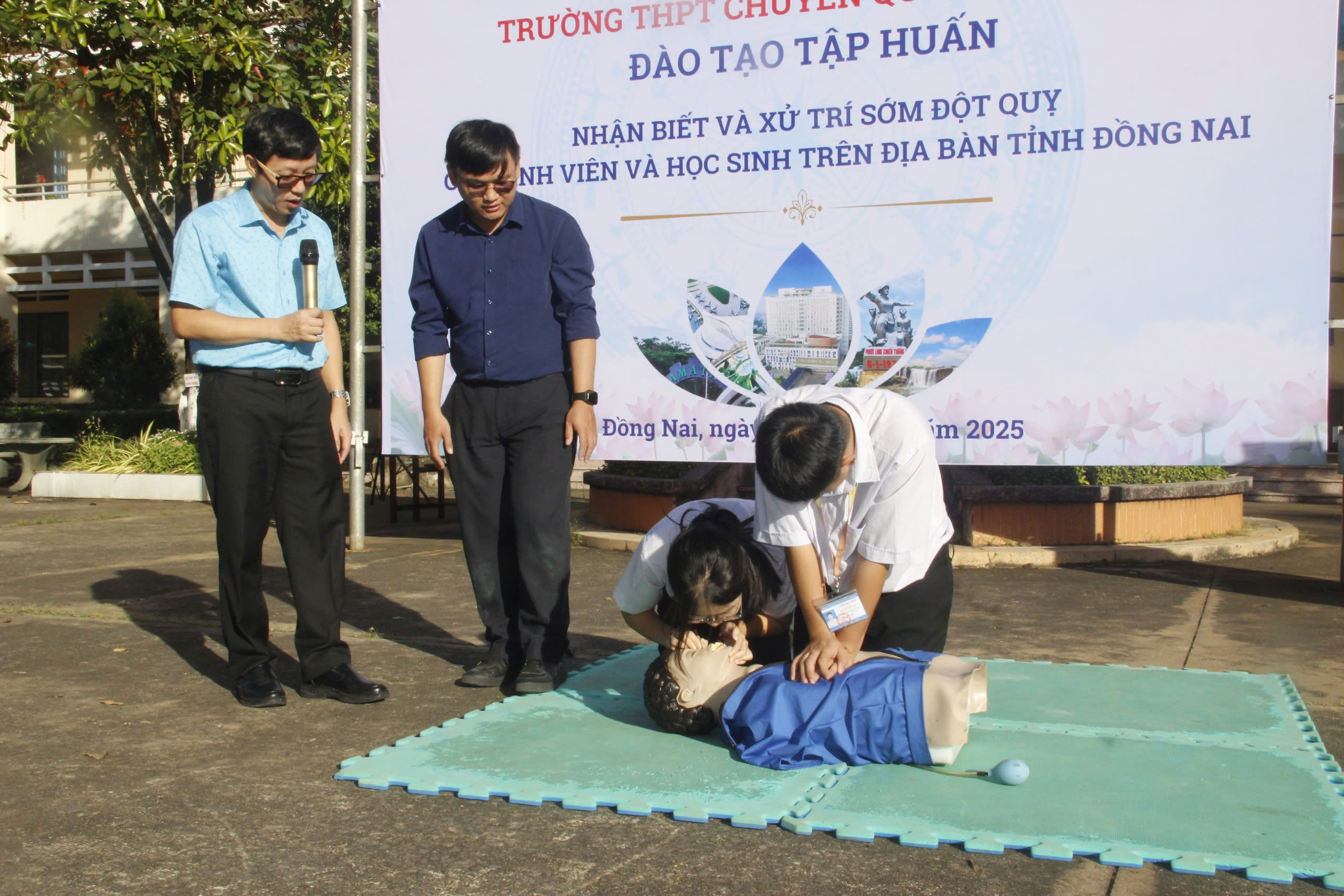 Nhằm trang bị kiến thức y khoa cơ bản và kỹ năng phản ứng kịp thời trước đột quỵ – một trong những nguyên nhân gây tử vong và tàn phế hàng đầu hiện nay, sáng 22-12, tại Trường THPT chuyên Quang Trung (tỉnh Đồng Nai), Sở Y tế phối hợp với Sở Giáo dục và Đào tạo tổ chức chương trình tuyên truyền “Nhận diện và xử trí sớm đột quỵ” cho 24 giáo viên và hơn 800 học sinh của nhà trường.