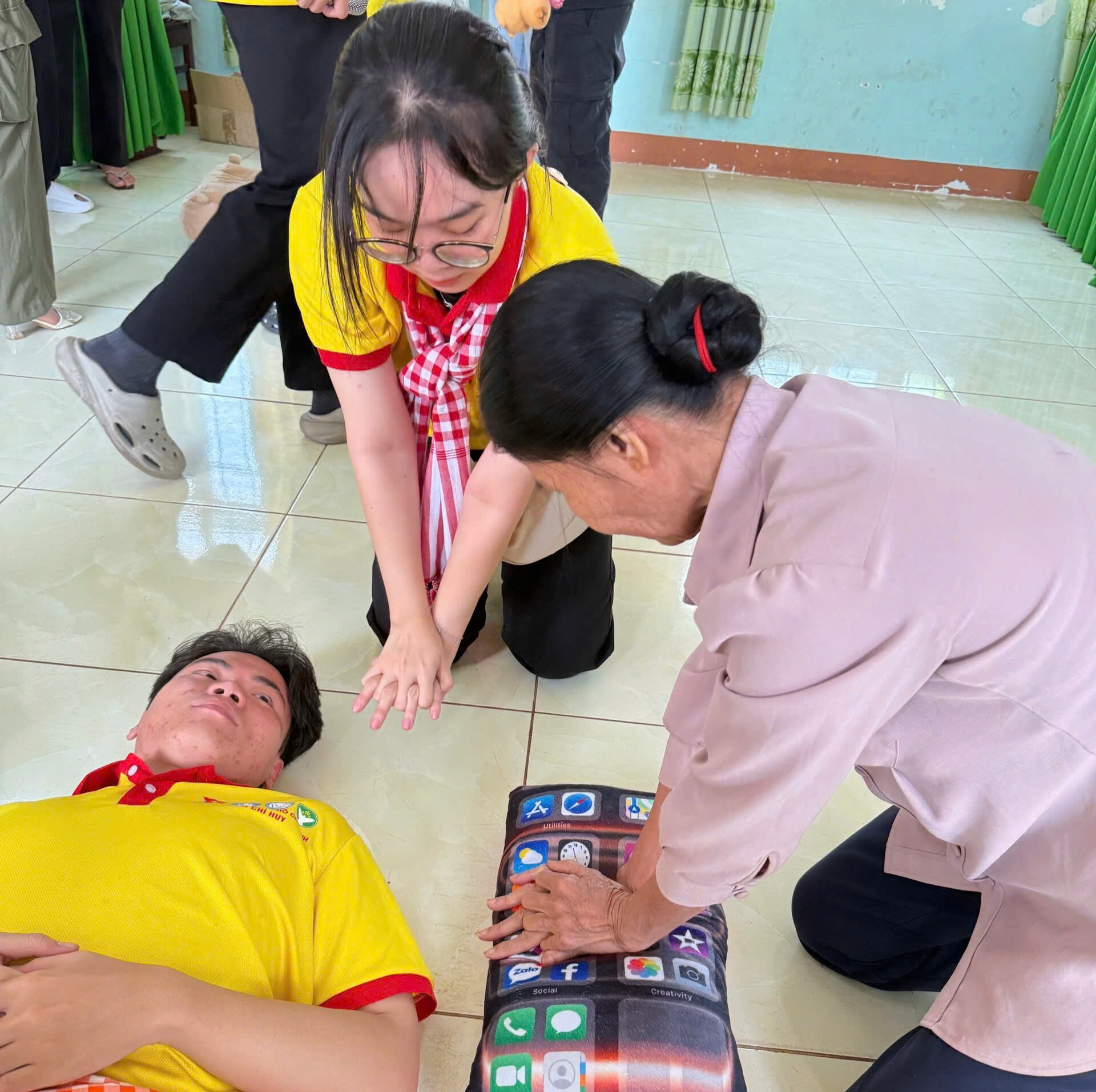 Tại lớp tập huấn, các học viên được trang bị kiến thức và kỹ năng cơ bản về sơ cấp cứu ban đầu, tập trung vào việc nhận biết và xử trí một số tình huống y tế thường gặp trong cộng đồng. Bên cạnh nội dung lý thuyết, chương trình chú trọng phần thực hành, giúp học viên trực tiếp tham gia xử lý các tình huống giả định, thực hành thao tác sơ cứu kịp thời trước khi chuyển người bệnh đến cơ sở y tế chuyên sâu.