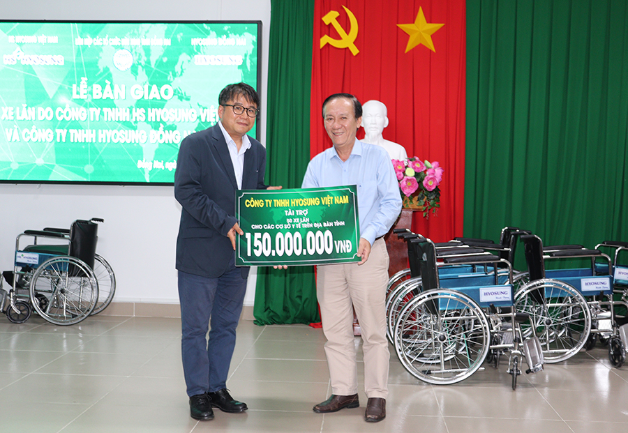 Phát biểu tại buổi lễ, ông Shon Pan Kyu – Phó Tổng Giám đốc Công ty TNHH Hyosung Việt Nam cho biết, Hyosung Việt Nam và Hyosung Đồng Nai là những doanh nghiệp FDI luôn tích cực đồng hành cùng tỉnh Đồng Nai trong thực hiện trách nhiệm xã hội. Trong thời gian qua, hai công ty đã triển khai nhiều hoạt động ý nghĩa như: tặng máy tính cho trường học, xây dựng nhà hữu nghị cho người dân khó khăn, phối hợp với tổ chức KFHI (Hàn Quốc) thực hiện Chương trình “Nụ cười viễn xứ” khám chữa bệnh, tặng quà cho người nghèo và người khuyết tật. Thông qua chương trình trao tặng xe lăn lần này, chúng tôi mong muốn chia sẻ phần nào khó khăn với các bệnh nhân, hỗ trợ họ thuận tiện hơn trong sinh hoạt và di chuyển. Hyosung sẽ tiếp tục đồng hành cùng cộng đồng bằng nhiều hoạt động thiết thực hơn nữa trong thời gian tới.