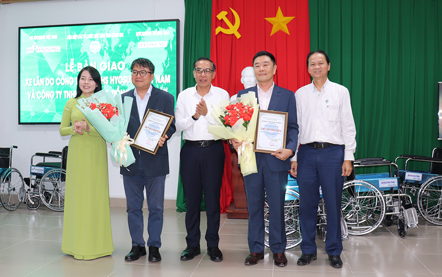 Chiều 31-10, Sở Y tế tỉnh phối hợp với Liên hiệp các tổ chức hữu nghị và hai đơn vị tài trợ là Công ty TNHH Hyosung Việt Nam và Công ty TNHH Hyosung Đồng Nai tổ chức Lễ trao tặng và tiếp nhận 100 xe lăn, tổng trị giá 300 triệu đồng, dành cho các cơ sở y tế trên địa bàn tỉnh.
