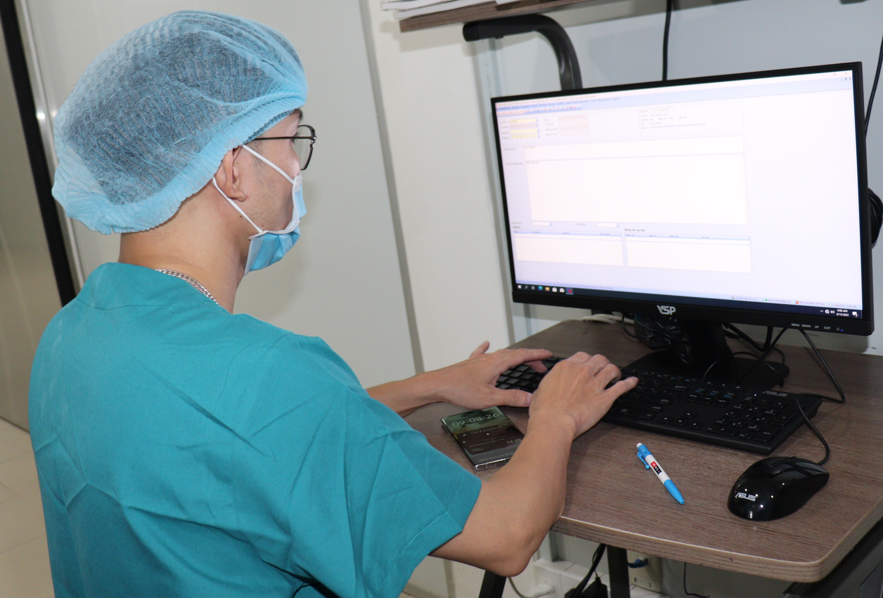 Bác sĩ Khoa khám bệnh điều trị theo yêu cầu Bệnh viện ĐK Thống Nhất đang tạo hồ sơ bệnh nhân bằng bệnh án điện tử.